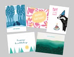 Love sending cards? Hate it when you run out? This bundle of fun, colorful birthday cards comes in a variety of colors and themes, perfect for friends, parents, spouses, kids—anyone who needs a smile on their birthday. Stock up on different designs so you always have some unique birthday cards on hand to send some love to your friends and family! Available as a set of 10 (includes 2 of each design).