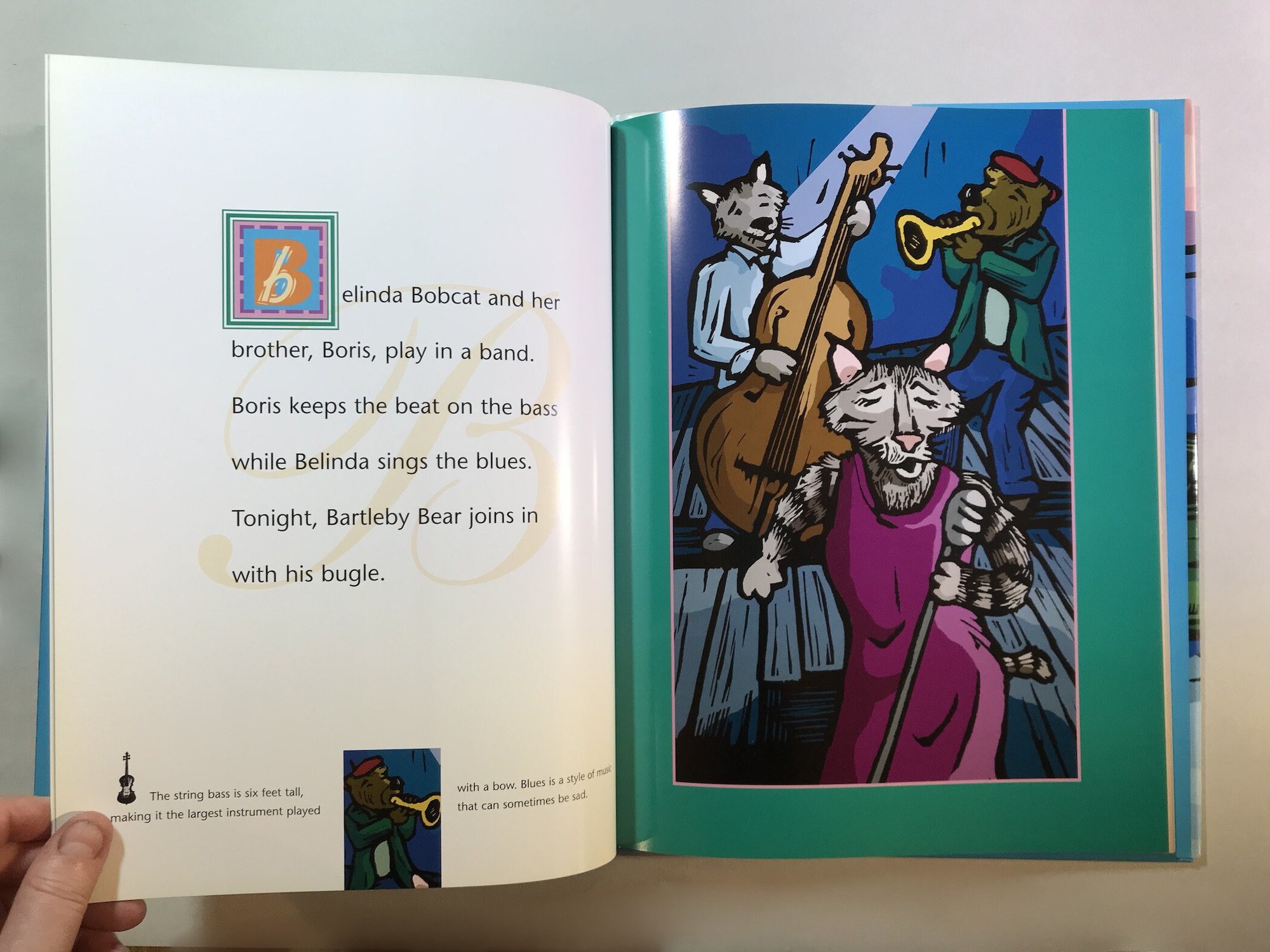 What do Animals Do on the Weekend? This children's book is one that I wrote and illustrated using linocut prints. The story imagines what animals do when we aren't watching them: bobcats play in a blues band, penguins go on a picnic, mice go to the moon, and tigers dance the tango. Each part of the story has whimsical alliteration and fun facts about animals, and each illustration features hidden objects that begin with each featured letter of the alphabet. Fun to read aloud, it brings a little bit of "I spy" to story time, too.