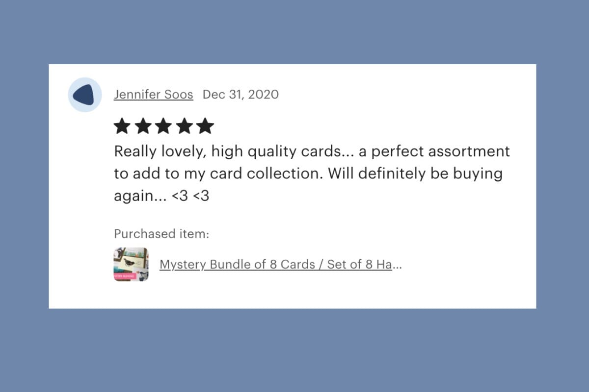 As often as possible, I use packaging that is compostable and recyclable (such as glassine, rigid cardboard mailers, and compostable padded mailers).