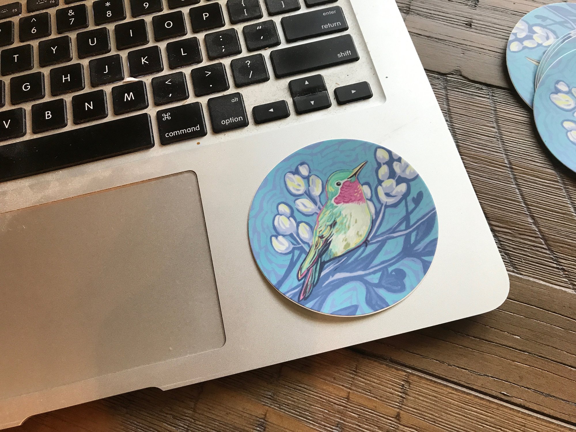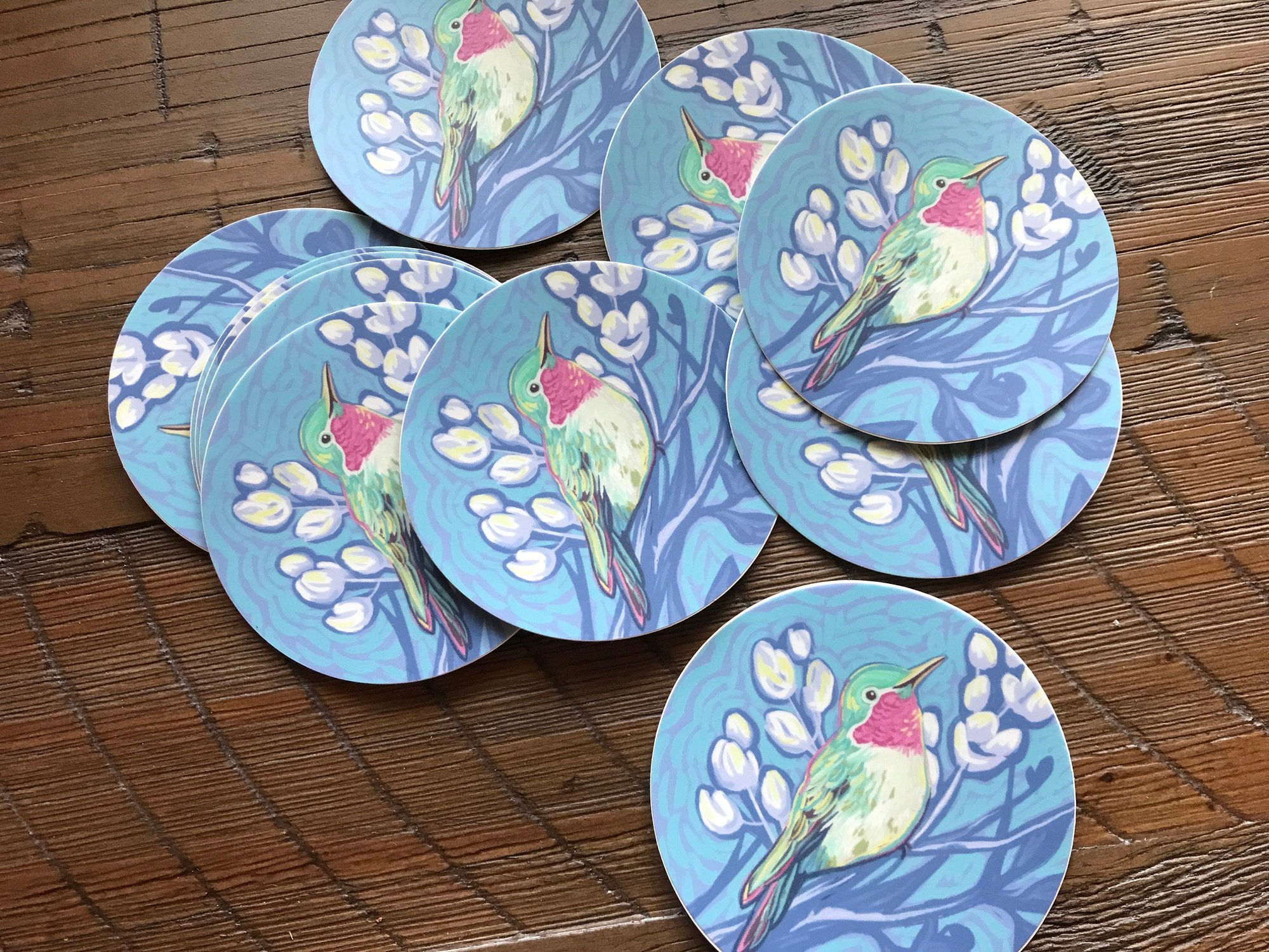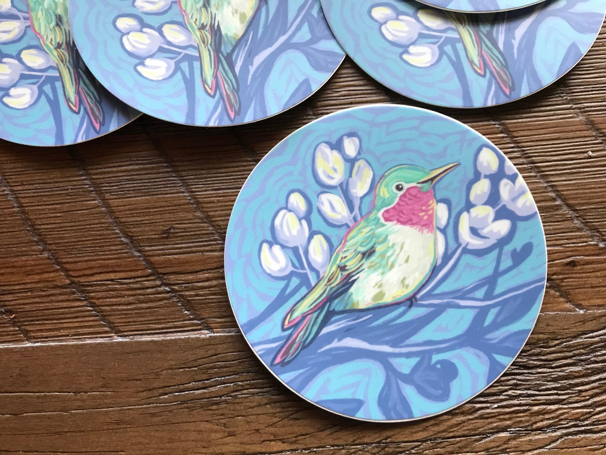 This premium quality sticker is made from my original illustration of a hummingbird. Made from durable vinyl, it can live on a water bottle, a laptop, or any other item that needs a little color boost and a splash of original art.