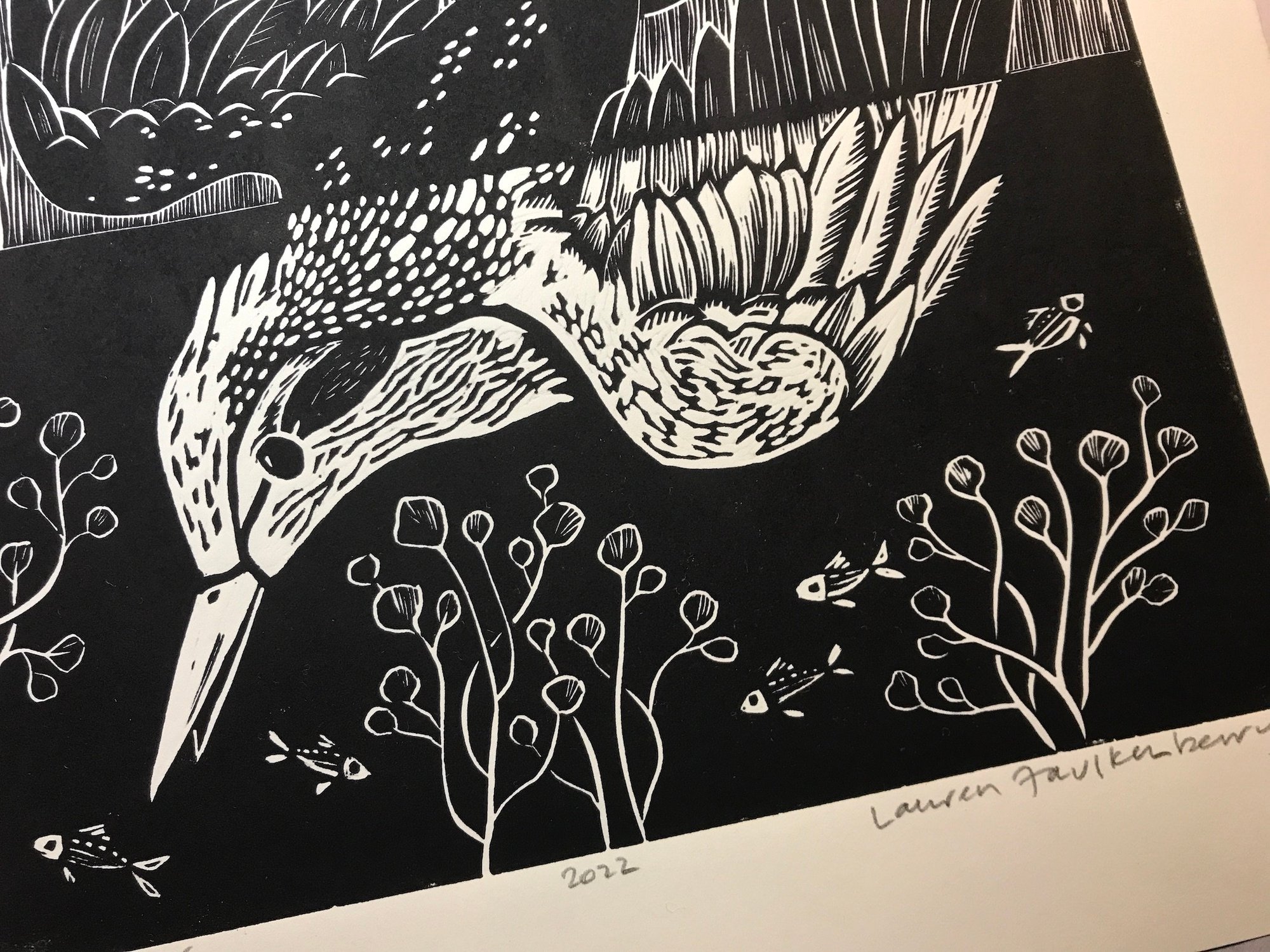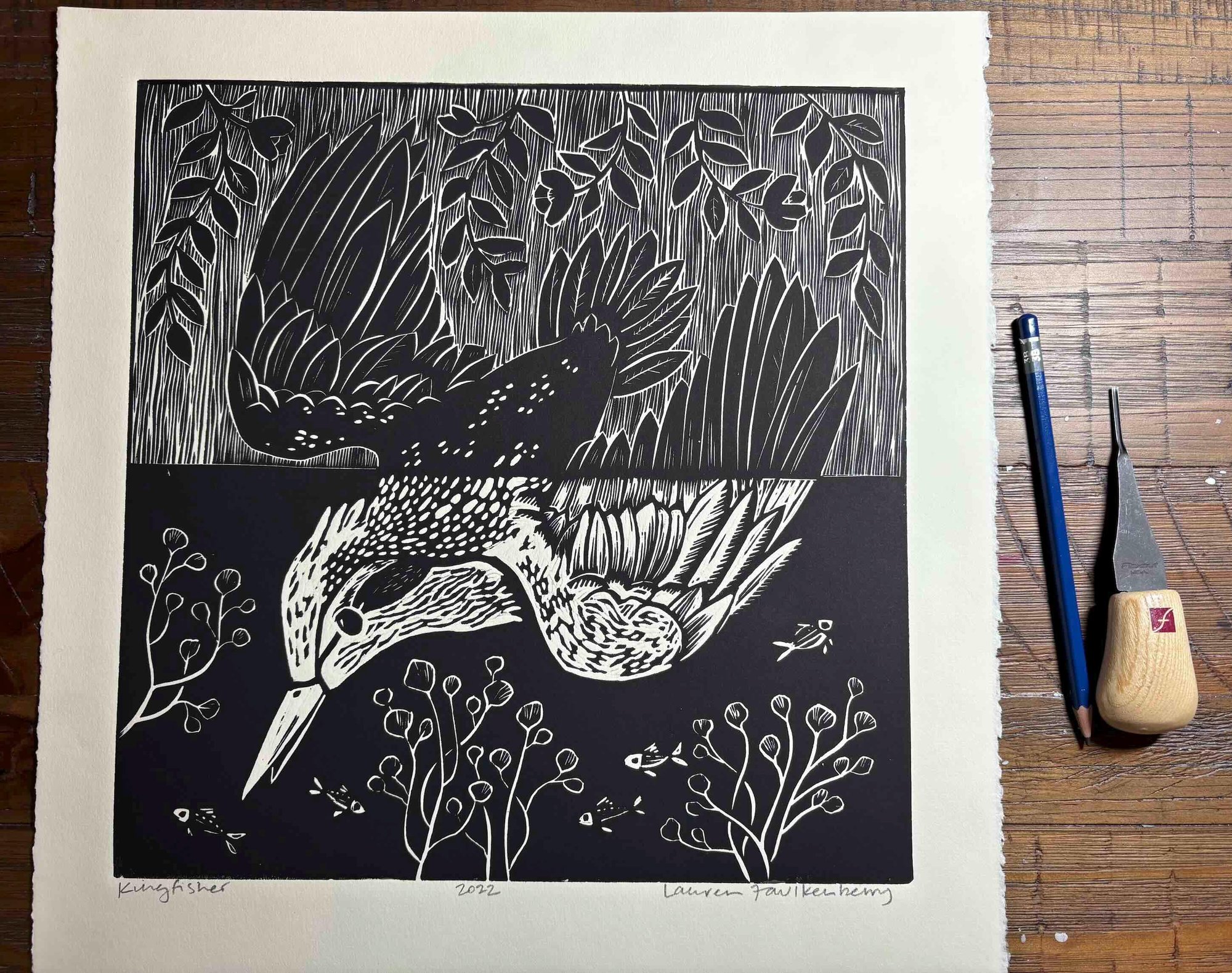 Kingfisher Linocut Block Print