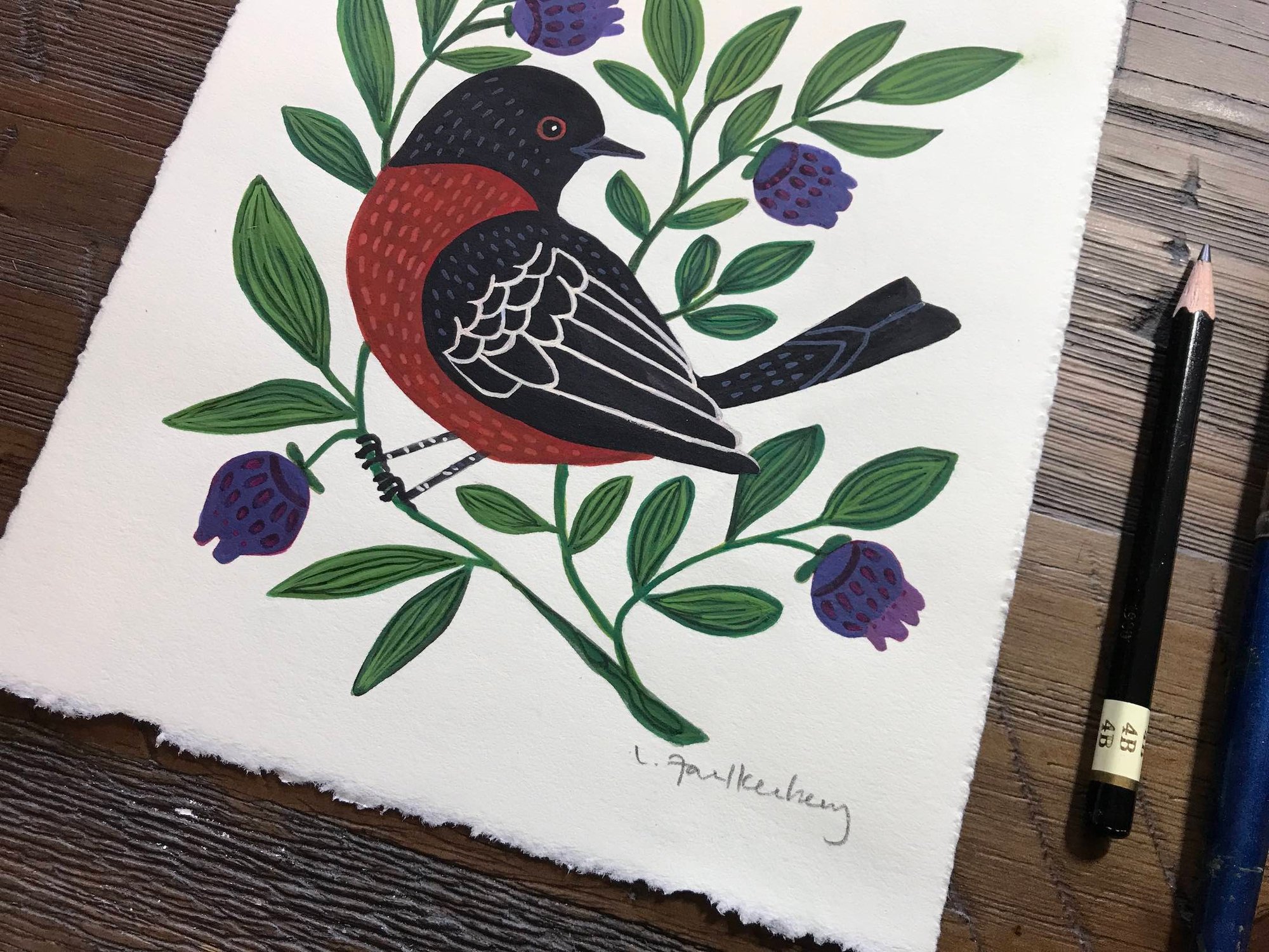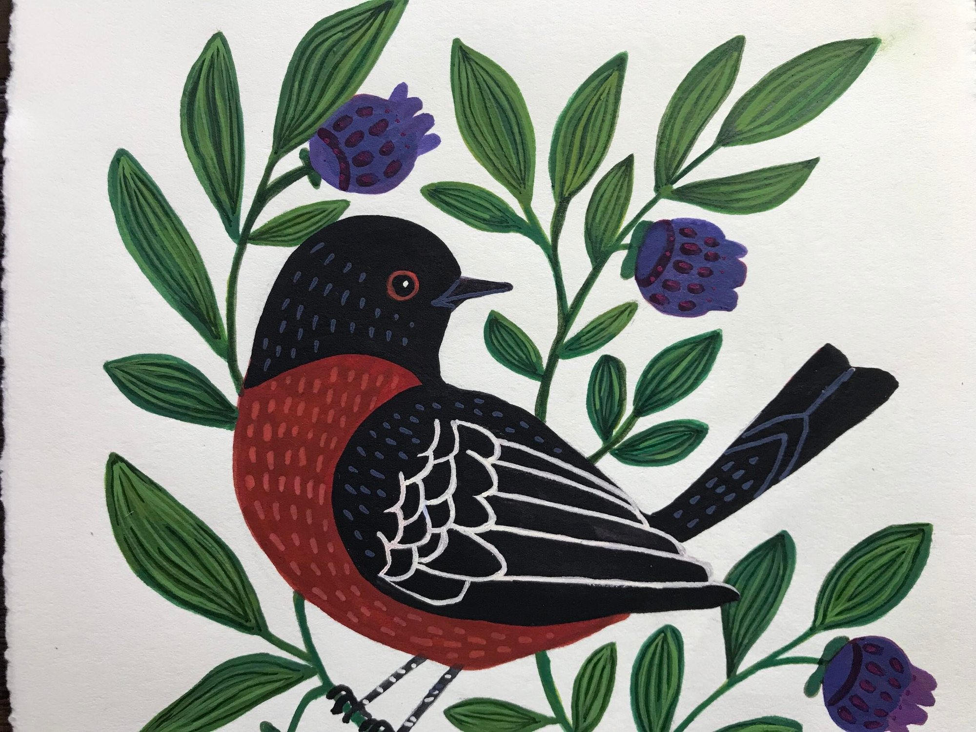 "Towhee" Original Painting with Gouache