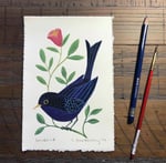 "Blackbird No 2" is an original gouache painting, signed and ready to frame. It's painted on premium quality archival cotton rag paper, which means it will last for years to come. Paper size is approximately 5.5 x 8.5 inches. This painting has an intentional torn border, which makes it easy to frame either inside a mat or using a float frame.