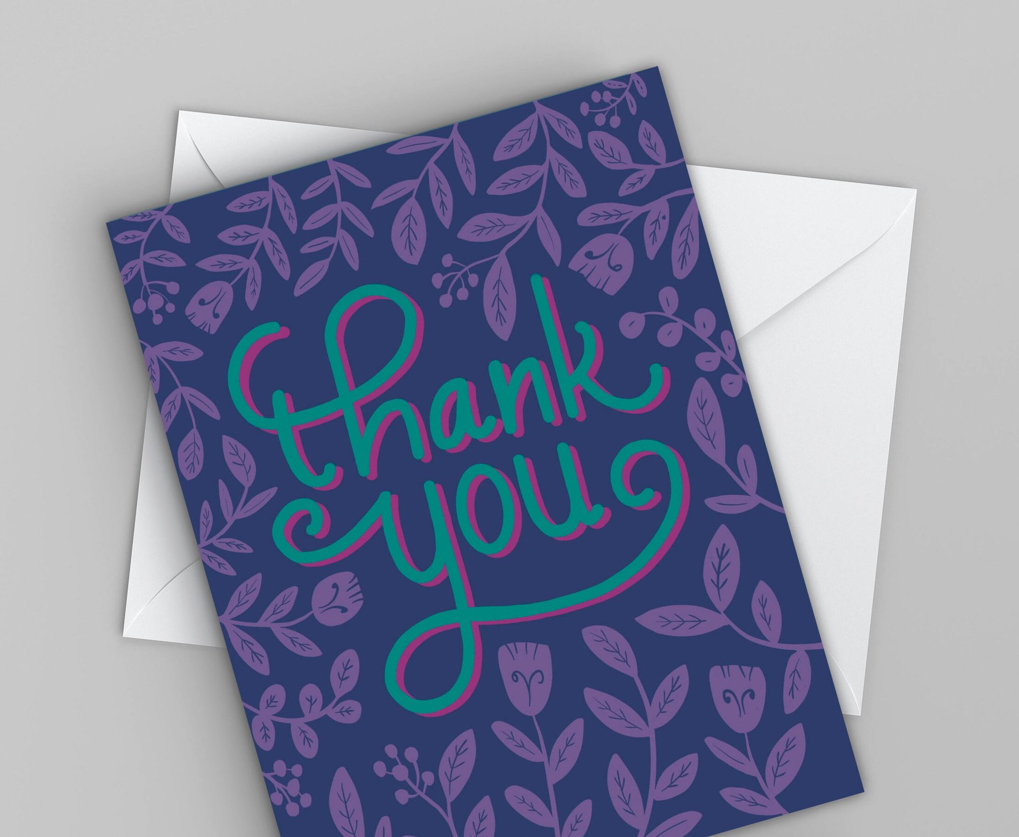These colorful cards are a fun way to send your thanks: great for weddings, parties, and other special events. This card is made from my own illustration and hand-lettering.