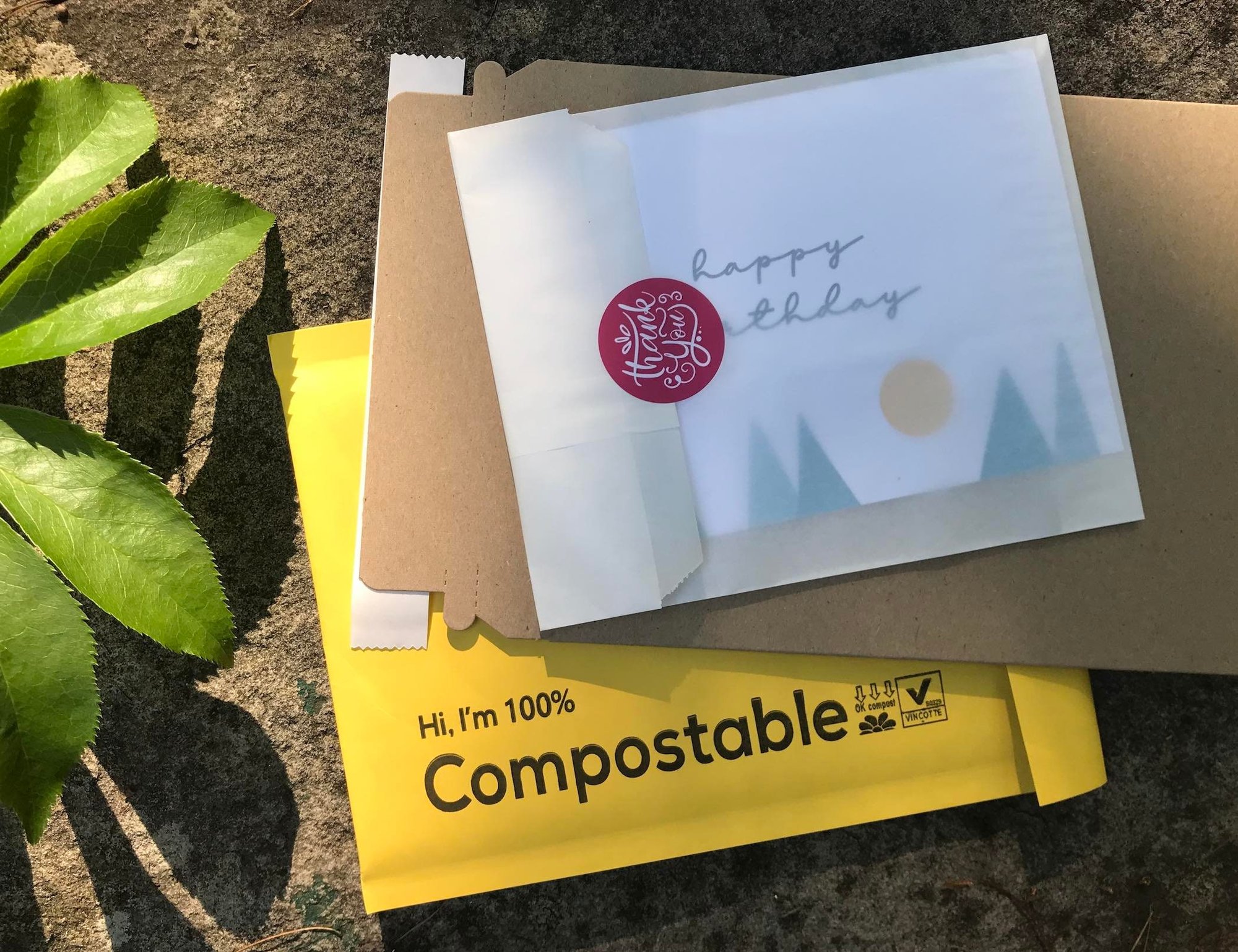 As often as possible, I use packaging that is compostable and recyclable (such as glassine, rigid cardboard mailers, and compostable padded mailers).