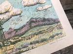 This original woodcut was made based on a photo I took while traveling through Galisteo, New Mexico. This is letterpress printed using multiple blocks carved by hand, and is printed in 4 colors. This is a limited edition print, signed and numbered, and printed on premium quality off-white archival Japanese paper with a generous border for easily framing. Image size is approximately 9 x 12 inches. Edition of 28.