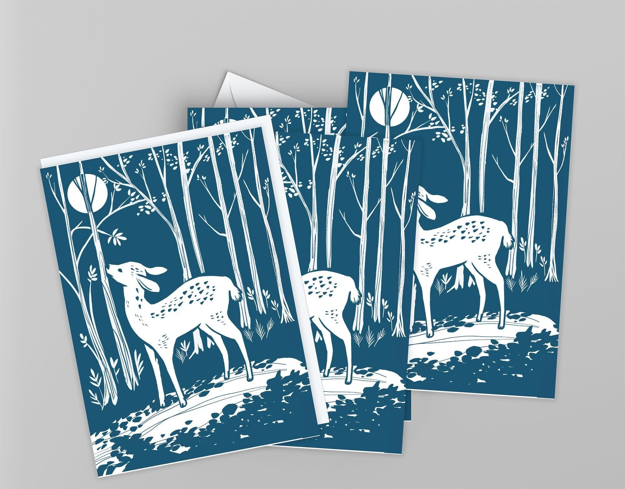 These rustic woodland cards are perfect for the nature lovers in your life. The design is my own original illustration and is printed in a lovely shade of wintery blue. Perfect for Christmas or any other winter holiday—or just to send some cheer this season.